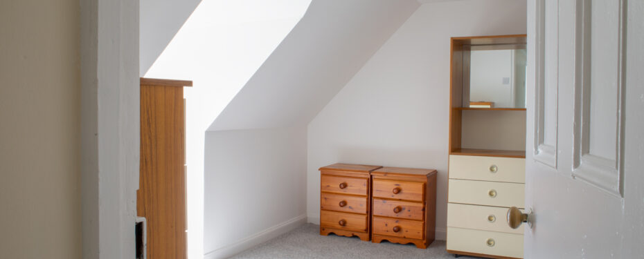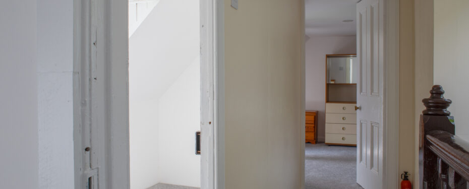 Upstairs there are three rooms; two double bedrooms and a single bedroom/study.