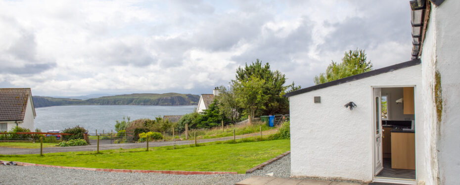 The Cottage 2 Idrigill is situated in the township of Uig. Located approximately 16 miles from Portree, the main town on the Isle of Skye. The property is set back from the road and is accessed by a single track road. The Cottage is a one and a half storey stone croft house surrounded by a grass lawn. Please note the maintenance of the garden is the tenants responsibility. Tenants have access to one wooden shed, a washing line and a plastic coal bunker. Private parking is available on the gravel driveway.